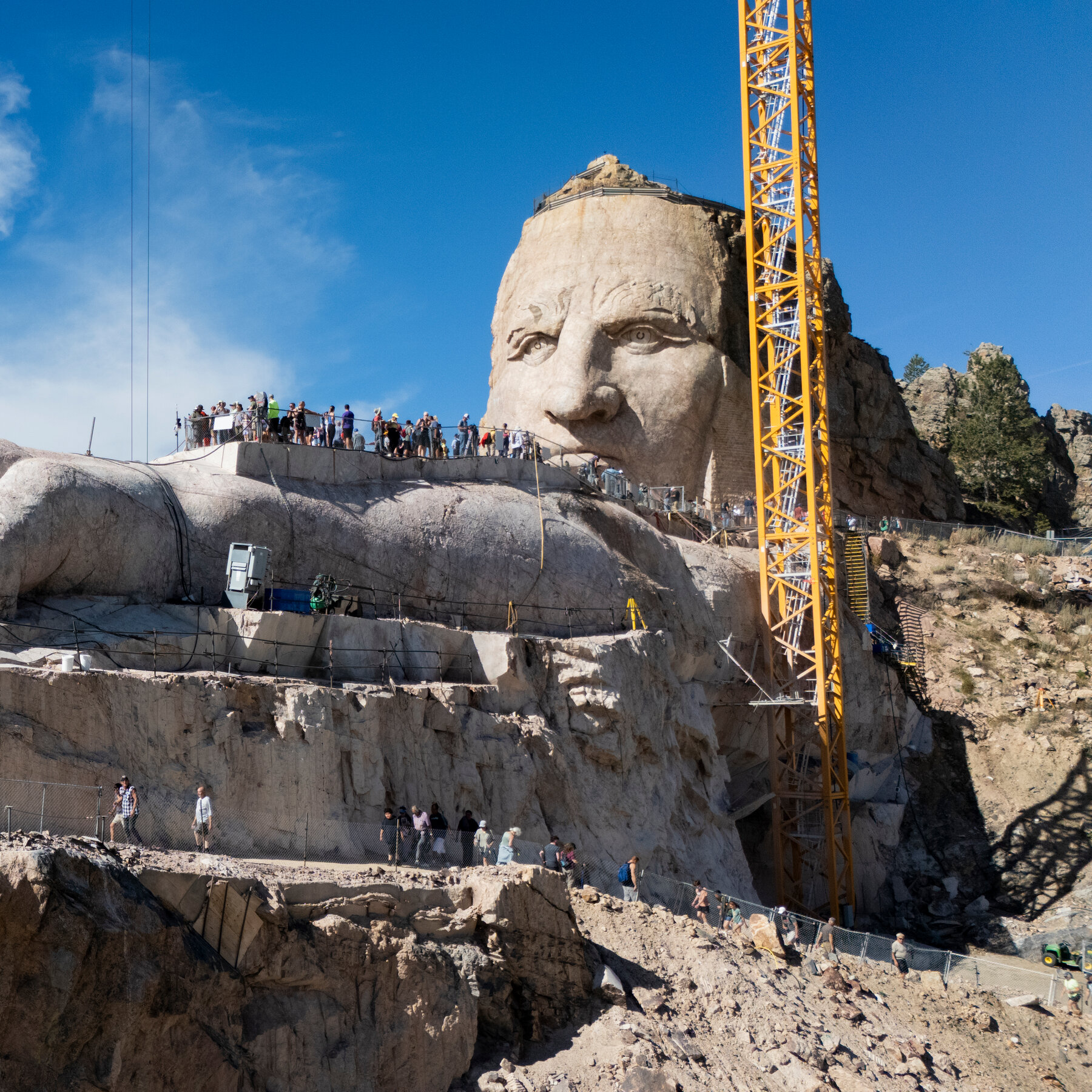 Thousands took part in a biannual hike to a South Dakota mountaintop, where a sculpture of the Lakota chief is in its 77th year of construction.