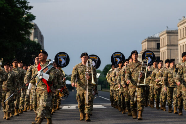 The Army is celebrating with a parade as it faces an uncertain future.