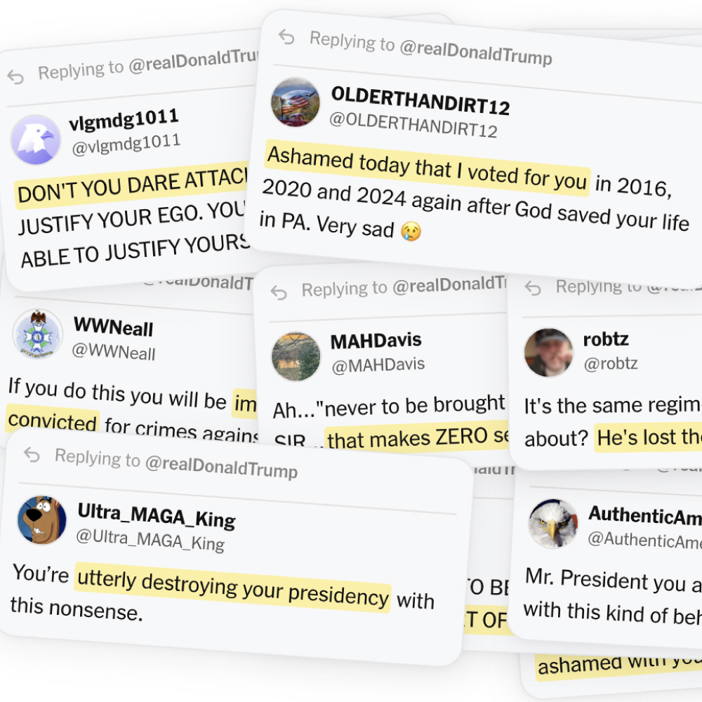 A growing chorus of disaffected Trump supporters is sounding off in the replies to his posts on the social media platform he founded.
