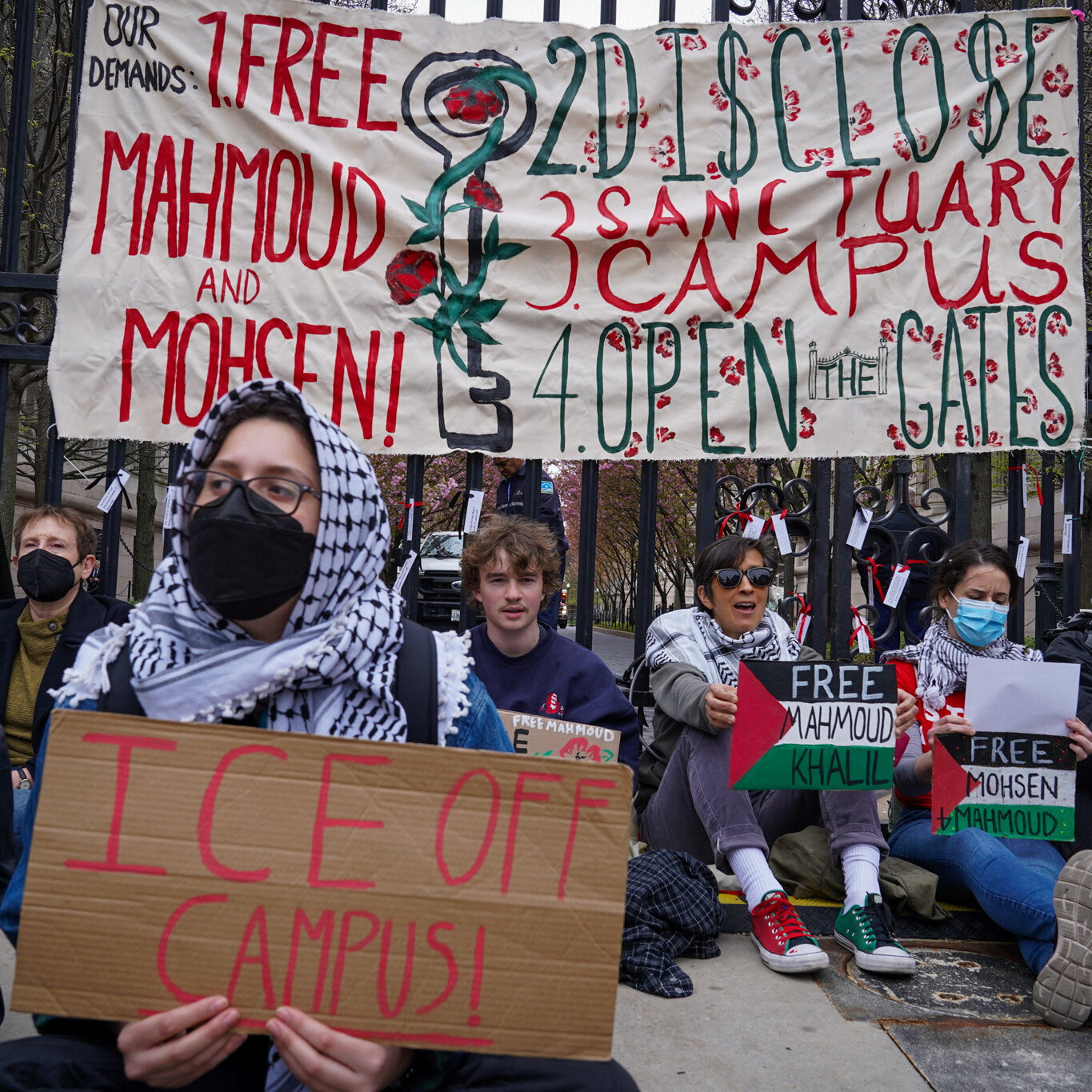 Protesters Chain Themselves to Columbia Gates, Calling for Activists’ Release